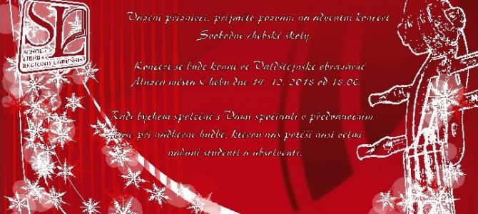 Vážení rodiče, žáci, studenti, absolventi a přátelé školy. Dovolujeme si Vás pozvat na vánoční koncert pořádaný Svobodnou chebskou školou dne 16.12.2018 ve Valdštejnské obrazárně Muzea města Chebu, konaný od 18:00.